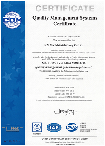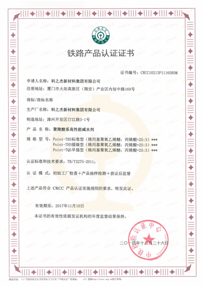 As a qualified partner for China Gov.’s high-speed railway concrete projects, KZJ was awarded CRCC certification from the China Railway Test and Certification Centre.