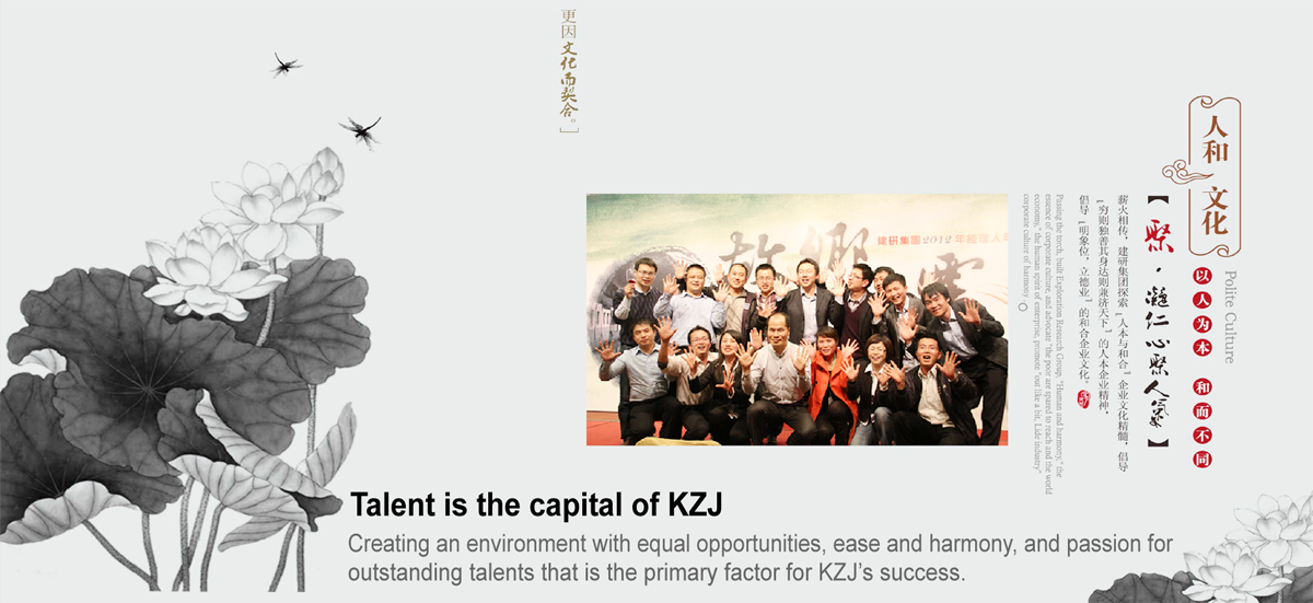 "People-oriented, harmony and diversity", KZJ strives to create a harmonious working atmosphere,and advocates simple and sincere interpersonal relationships.